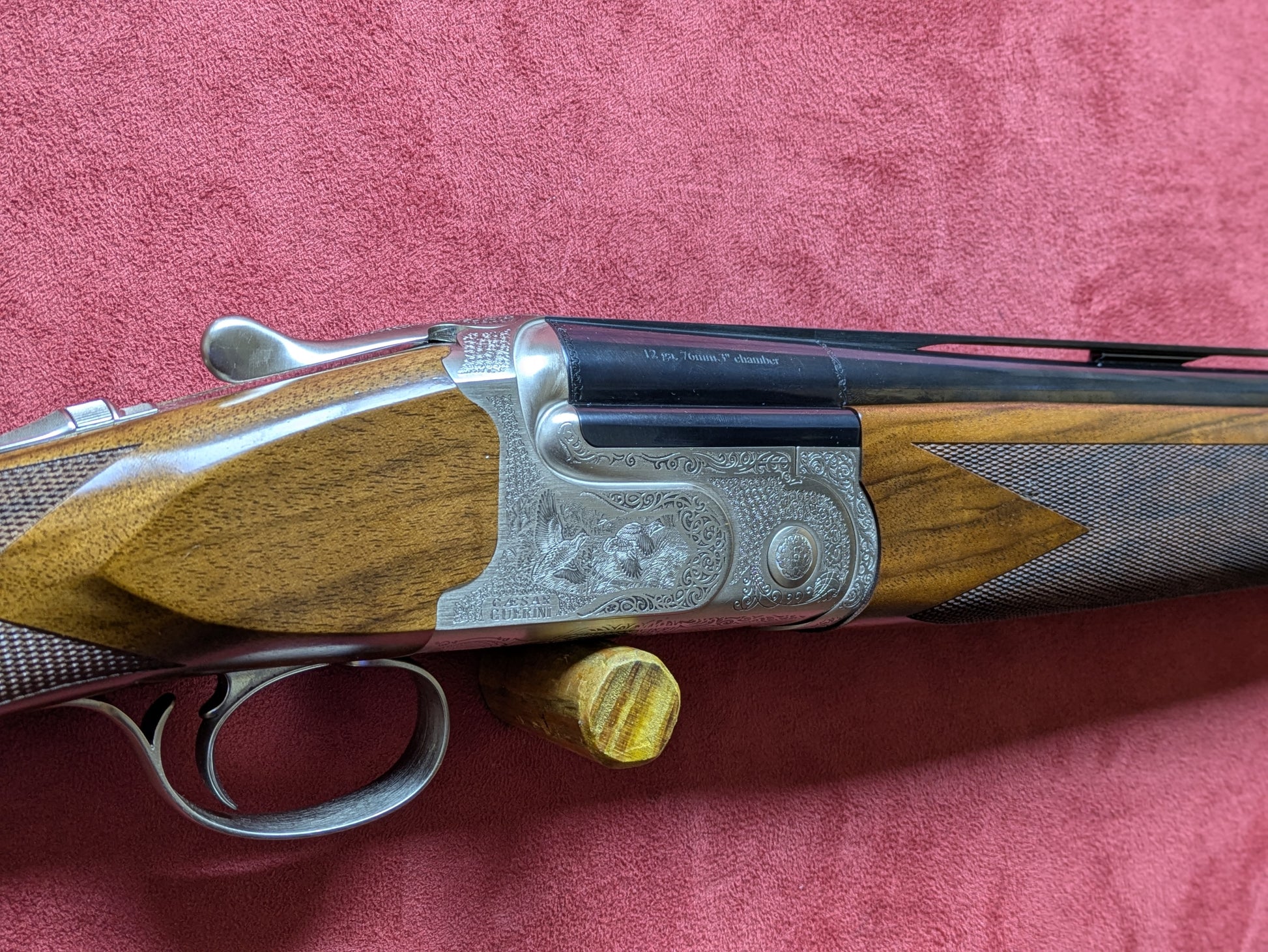 Single selective adjustable trigger, ejectors, engraving finished by hand, ventilated top rib, oiled adjustable stock, supplied with ABS case.