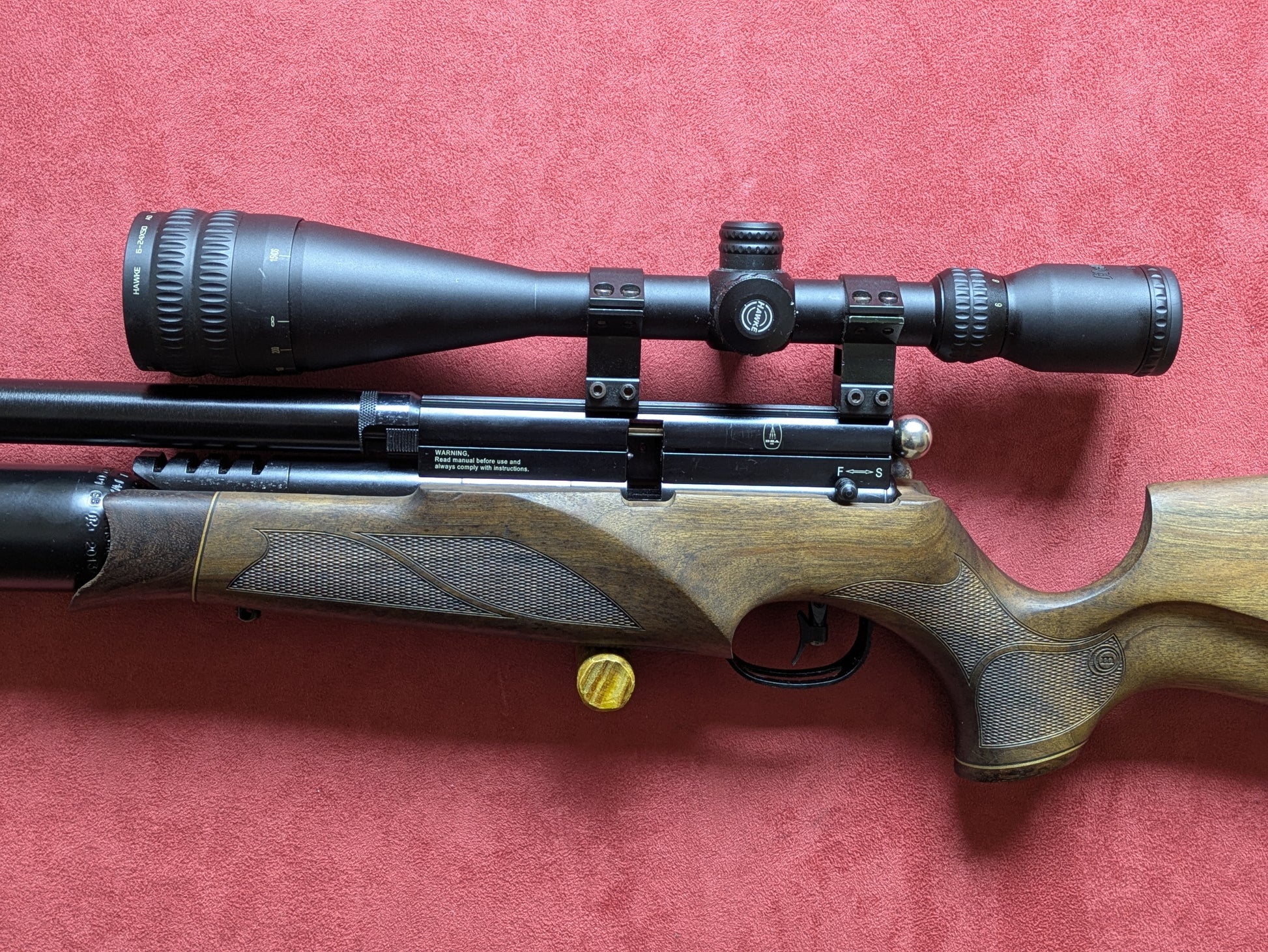 Pre owned - Good condition, few little scrathches on the blueing. Comes with magazine, filler , scope and mod.