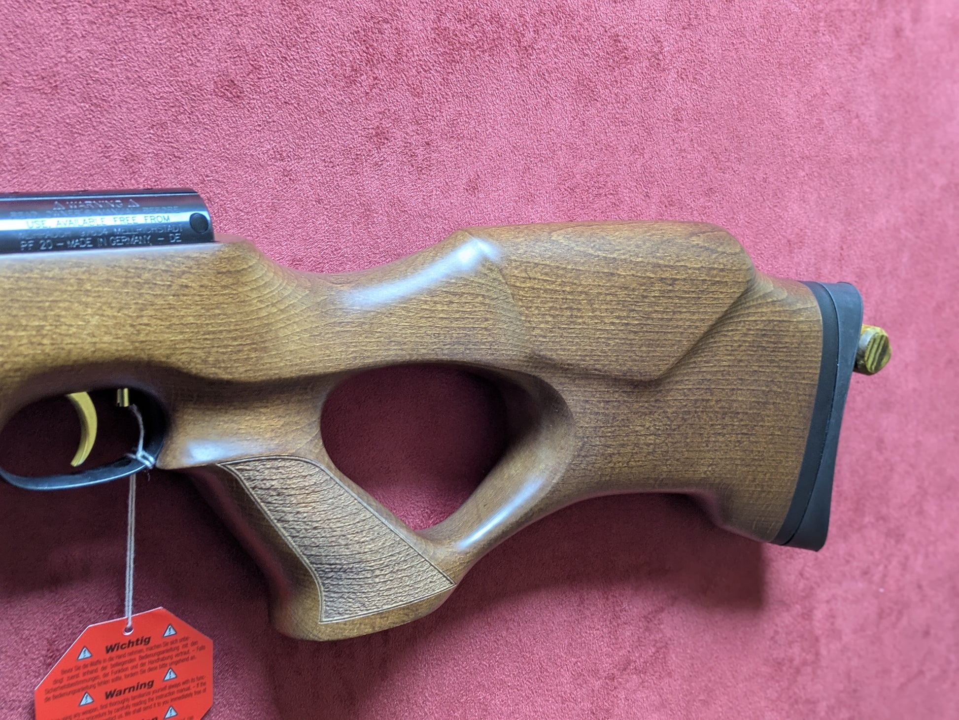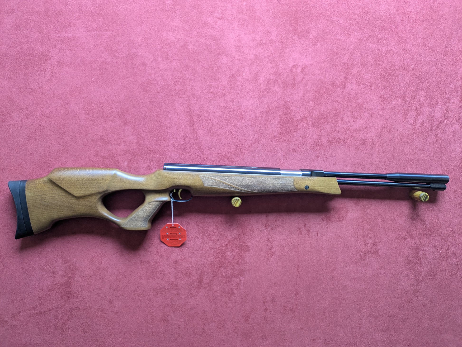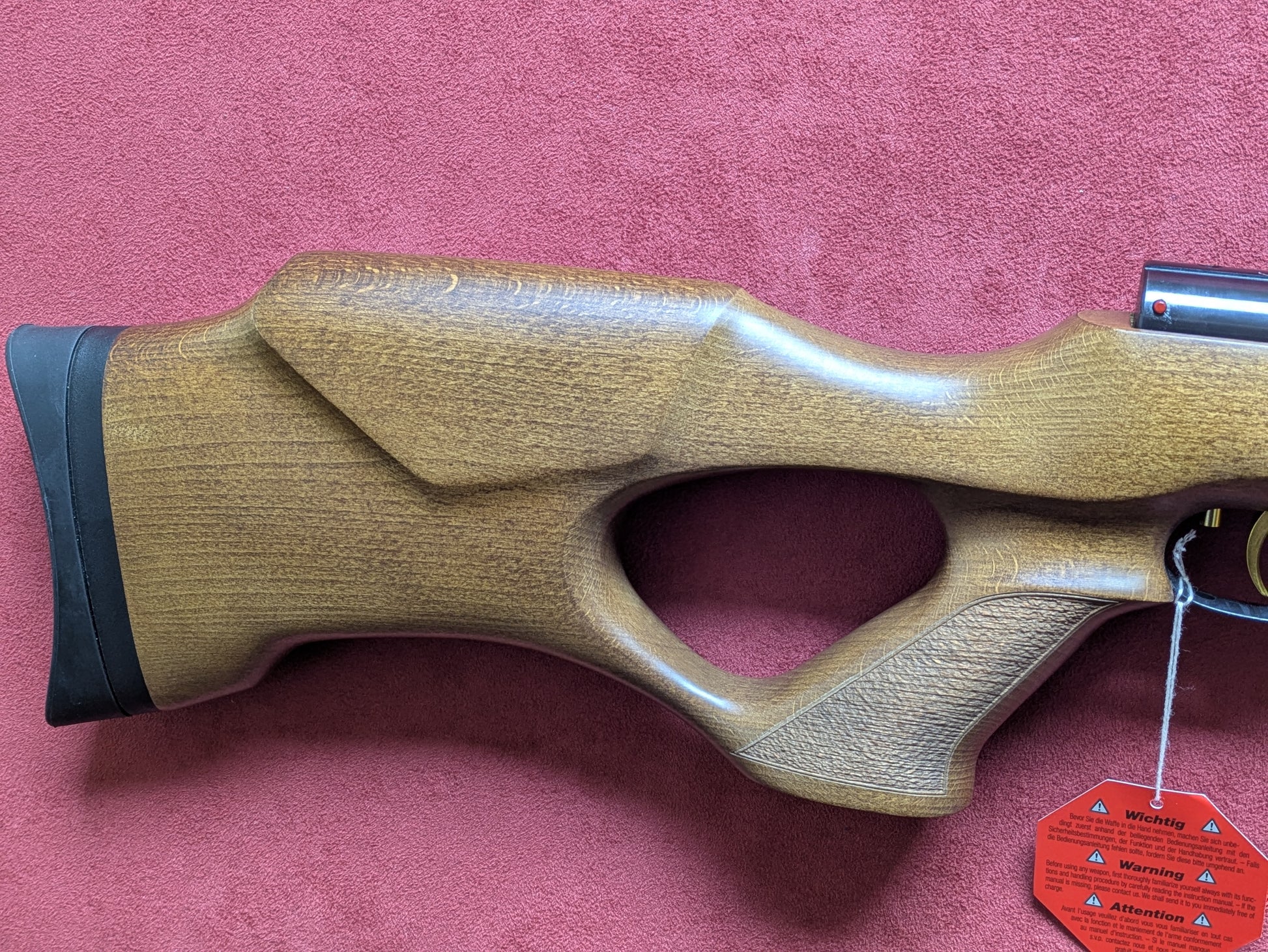 This is the thumbhole variant featuring a beechwood stock and a black action with adjustable butt plate.