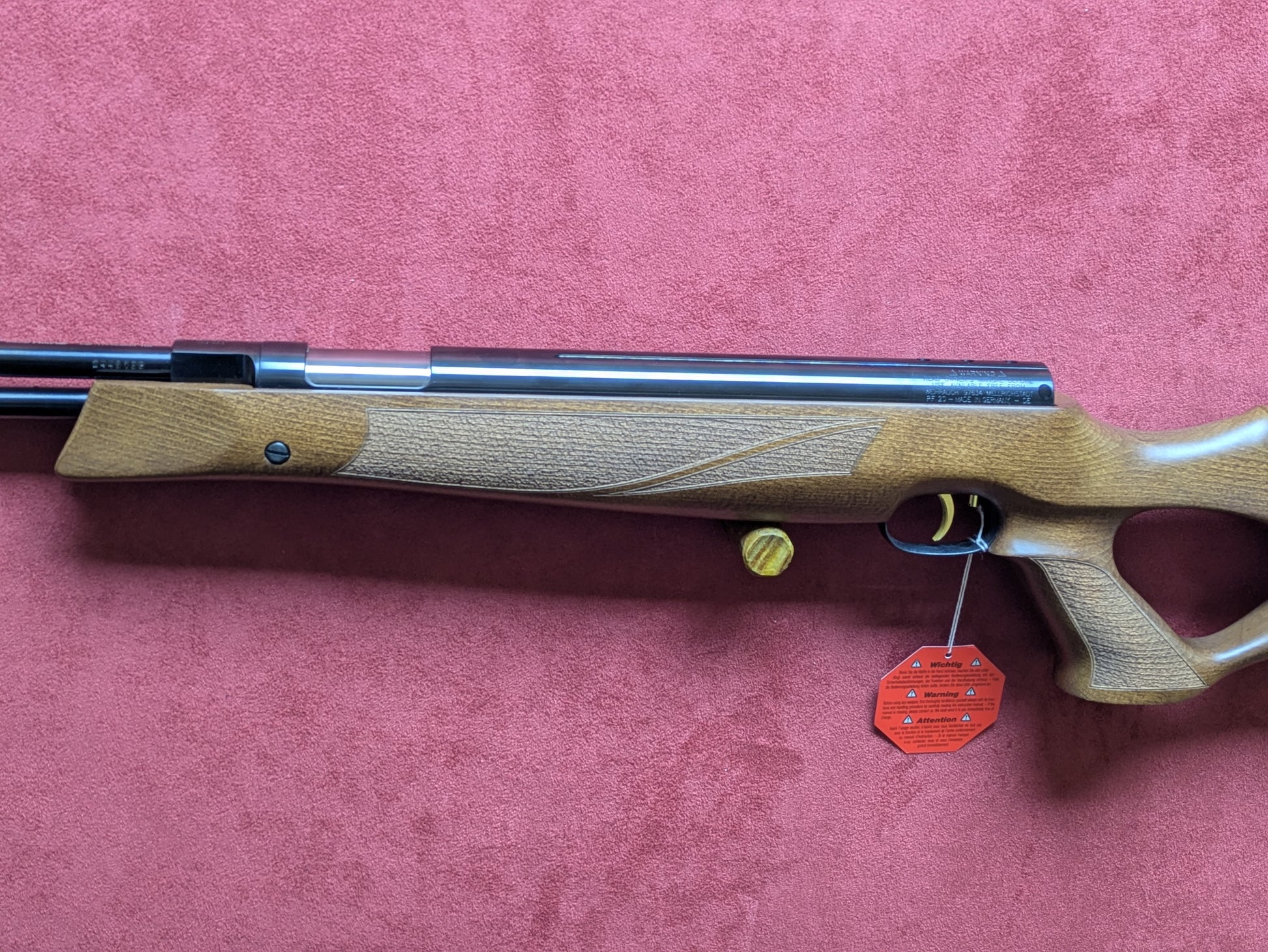 HW97 KT OVERVIEW: This legendary spring powered under-lever air rifle was especially developed for field target shooting but makes a superb hunting gun too. The fixed barrel action is equipped with the Weihrauch muzzle weight, reducing muzzle flip and increasing accuracy. The specially crafted high comb stock is designed for scope use and is also available in a blue laminate.